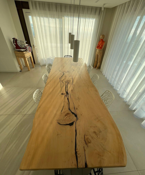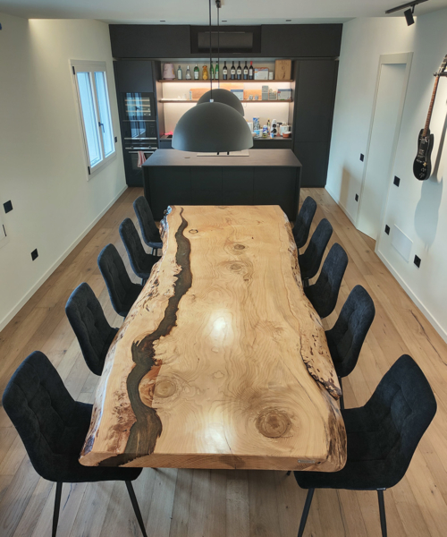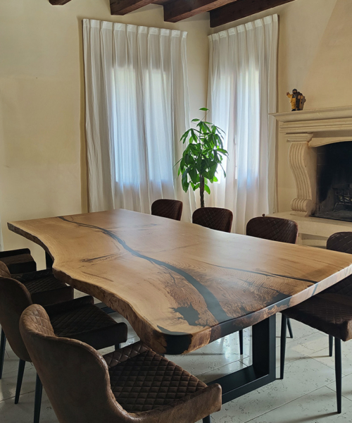 I miei tavoli in legno massello e legno con resina epossidica a Vicenza sono perfetti per i diversi ambienti della casa, dalla cucina alla sala da pranzo, realizzazioni artistiche di dimensioni importanti, fatte con legni selezionati e italiani. Tra le tipologie di legno che utilizzo ci sono: olivo, rovere, noce, castagno, cedro: consiglio il tipo migliore coniugando il mio gusto personale con le necessità del cliente. La resina epossidica è un materiale molto versatile e particolare: i miei tavoli sono in grado di unire le venature uniche e l’eleganza senza tempo del legno con la modernità della resina. Anche per quanto riguarda le gambe del tavolo potrai scegliere tra ferro, acciaio e legno, tutte resistenti e stabili, perfette per piani grandi e pesanti in resina epossidica e legno massello.